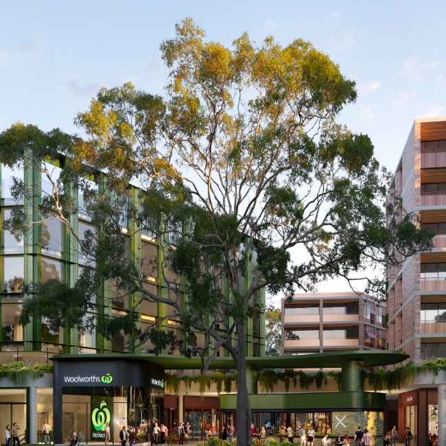The winning design by Bates Smart embodies excellence with its unique blend of creativity, functionality, and aesthetic appeal. Bates Smart’s approach seamlessly combines the essential elements of urban life: a full-line Woolworths supermarket, ‘on-demand’ retail, specialty shops, and a commercial building, all while enhancing the community’s connection to nature. This design represents a commitment to thoughtful, sustainable architecture that responds to both the historical roots of Waterloo and its vision for the future.